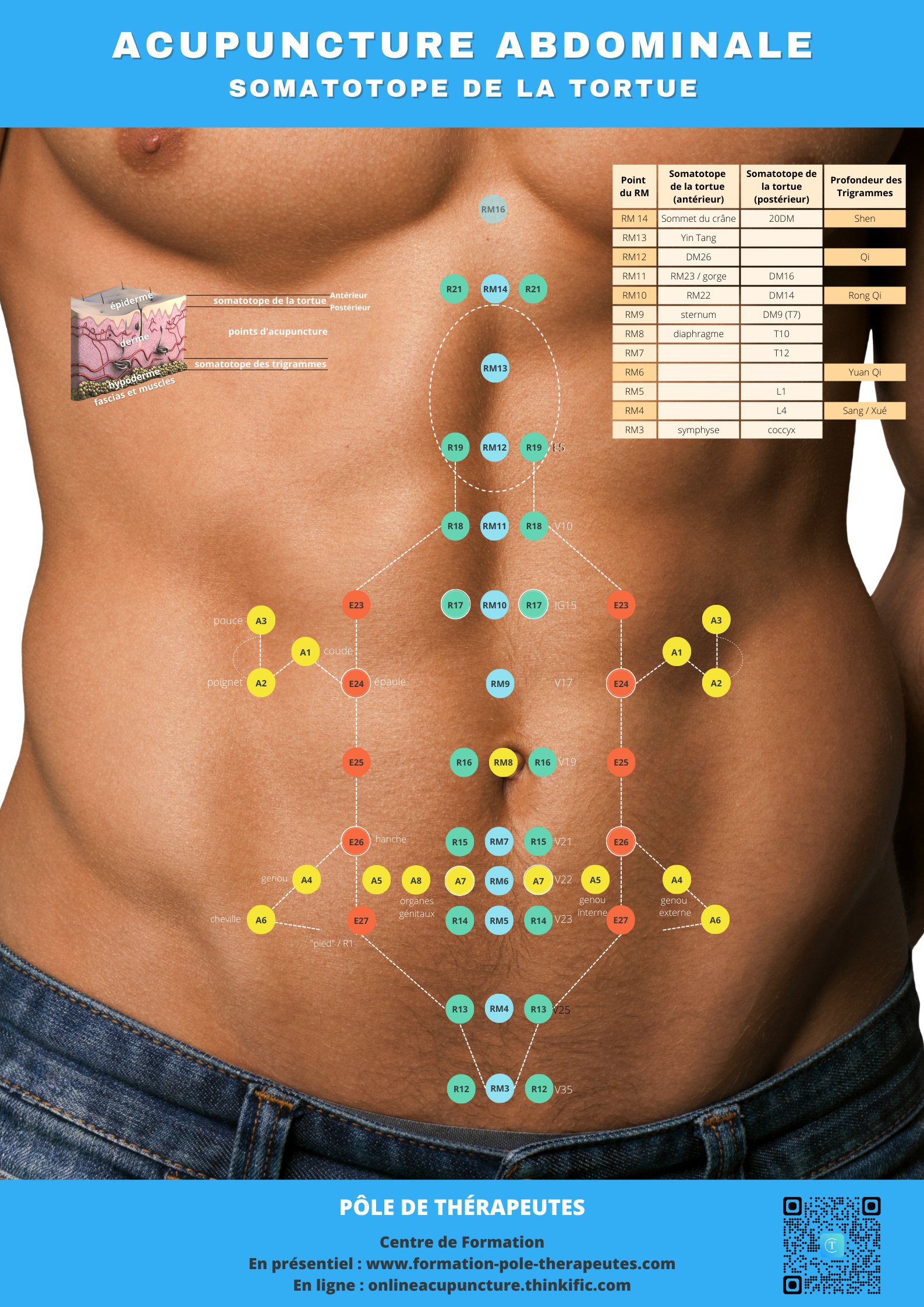 J'ai appris l'Acupuncture Abdominale avec JOSE HERRERO CORTES et je suis chaque jour impressionnée par les résultats obtenus. Je voulais un support clair et précis pour me souvenir de la position des pattes de la Tortue et des différentes profondeurs d'action, alors je l'ai fait ! Je le partage maintenant avec vous. (C'est marrant les hommes me demandent pourquoi j'ai fait un modèle homme... À votre avis les filles ?)